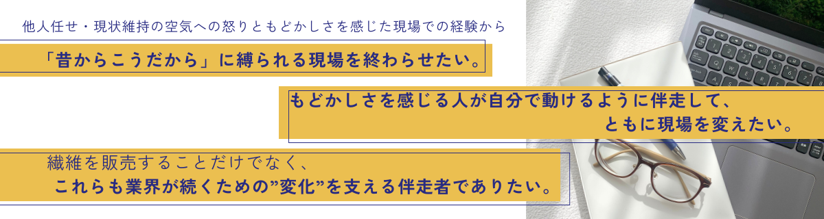 この経験を活かし、繊維を販売するだけでなく、働き方の変化を支えるために、皆さんの伴走者になれると考えました。