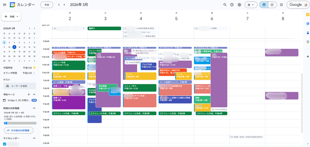 私は今、Googleカレンダーを使って「未来の種まき」の時間を色分けして確保しています。
